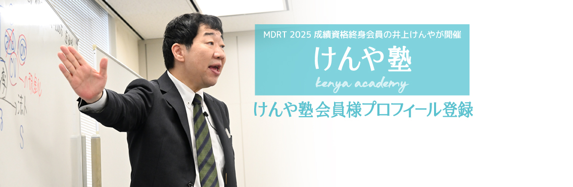 - ご入力いただきました個人情報につきましてはけんや塾及び井上けんやのセミナーのご案内の目的で利用させていただきます。